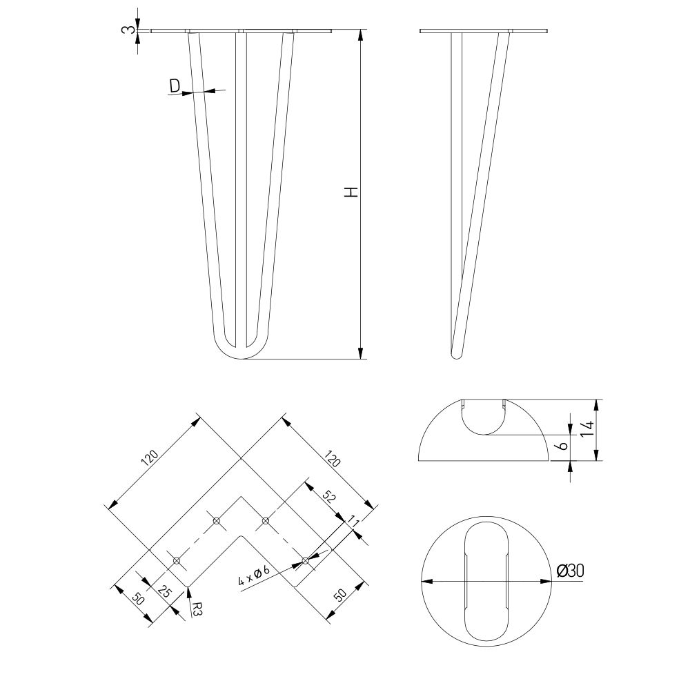 Picior masa ARTO GTV. H406mm Negru mat